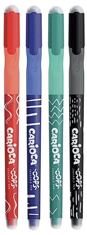 Carioca Oops Penna Cancellabile Ricaricabile per Scuola e Ufficio con Cappuccio, Doppia Gomma e Impugnatura Ergonomica