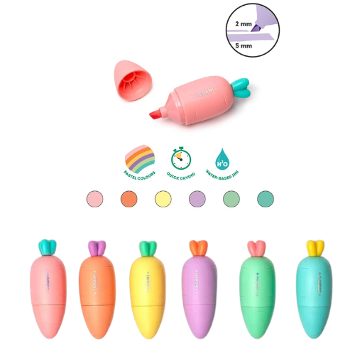 Legami HC0001 Set di 6 Mini Evidenziatori, Carrate Team, Evidenziatori a Forma di Carota, Inchiostri a Base d'Acqua, per Tratti Fini e Spessi, Colori...
